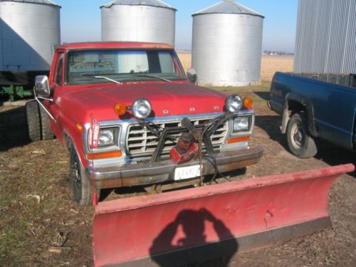 1979 Ford F350 Cab and Chassis with 7.5ft Western cable control snow plow. This truck does not have a title. Truck is equipped with inline 6 cylinder 300 engine coupled to 3 speed automatic transmission with Dana 70/4.56 ratio rea