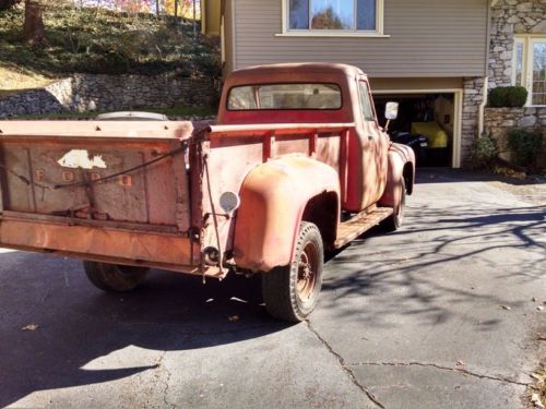 1954 Ford f350 step side dump truck. The engine is a 59 292 and runs very well. The bed is 9' long and the wood would have to be replaced. Mileage is what the odometer reads, actual mileage is unknown.New battery (6volt), head lig