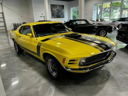 Full size photos1970 Ford Mustang Boss 302 100 Miles YellowStock #:1493CFExterior Color:YellowInterior Color:BlackTransmission:ManualDrivetrain:RWDEngine:Boss 302 V8Mileage:100