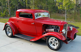 You are bidding on a 1932 Fiberglass Ford street rod, three-window coupe. Finish is great with exposed door hinges and a stock-looking firewall making it look like a steel car. Car has a steel louvered hood. Power windows all ar