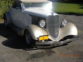 1933 FORD ROADSTER CONVERTABLE, two tone metallic cream and tan, with cloth covered removable hardtop, and removable side curtains. 350 Edelbrock fuel injected crate motor with 1783 miles, total car weight 2445 lbs, 700R Automatic