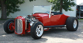 VERY NICE 1927 FORD ROADSTER WITH THE PERFECT STANCECUSTOM BUILD WITH FIBERGLASS BODYPOWERED BY A 350 V8 WITH EDLEBROCK VALVE COVERS AND MANIFOLD, WITH 4BBL CARTER AFB COMPETITION CARB BOLTED UP TO A 350 TRANSMISSIONFRONT TIRES AR