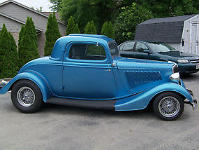 1934 original Henry Ford steel body 3 window coupe, never chopped, channeled or filled. This car has had glass fenders and gas tank cover since day one of 70's build. Along with purchase comes a nice original Henry Ford steel fron