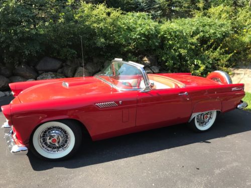 Our family is selling our restored 1956 Ford Thunderbird. Please keep in mind we do drive this vehicle and it is a joy to drive. This cherry red convertible comes with its original white hardtop and white convertible cover. It c