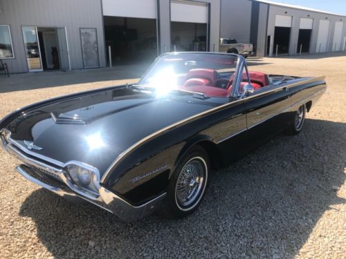 1962 Ford Thunderbird Roadster Number Match 390 Big Block Balanced & Blueprinted Automatic. Restored factory Raven Black Beauty with Red leather interior. Power windows, Power top and sliding steering wheel. Extremely rare fin