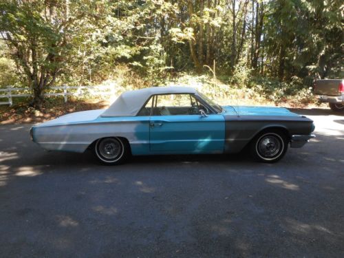 For sale a 1964 Ford Thunderbird, it is a turquoise car with a white top and white interior, this car has had all off the major work done to it, that includes, the engine and transmission rebuilt by previous owner, the carb is n