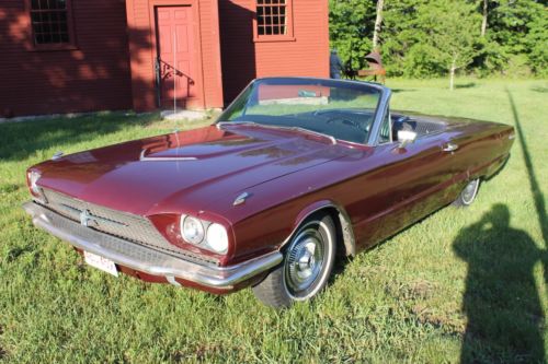 1966 THUNDERBIRD CONVERTIBLE 390 ENGINE TRANSMISSION BRAKES WORK GOOD MAROON WITH WHITE ROOF, BLACK INTERIOR COMPLETE CAR, CURRENTLY GOING TO CAR SHOWS EVERY NIGHT, RADIO WORKS GOOD, POWER WINDOWS, POWER SEAT, TOP MECHANISM WORKS