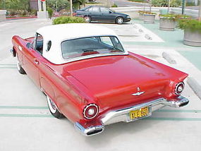 1957 Thunderbird, generally acknowledged as the best-looking American car ever produced.This is a 1957 convertible beauty in the best color scheme (Red with black/white interior) with a white porthole removable hardtop.This car wa