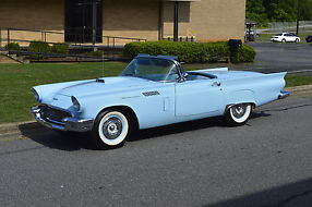 1957 T Bird with Frame off restoration. Starmist Blue with matching blue interior. Flawless Porthole hardtop. Engine dress up kit, Coker white walls, deluxe wheel covers, rare radio (upgraded with CD player in glove box). Body is