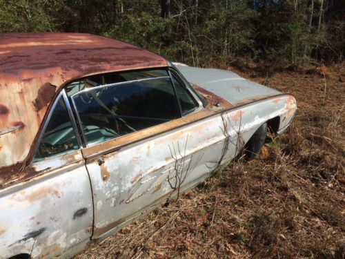 1963 Ford Thunderbird parts vehicle with 390 FE V8. Automatic transmission. All trim in very good shape. All glass is good. And some interior parts are useable.