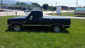 What we have here is a 1987 GMC 1/2 Ton SWB Black beauty. This truck is mint, has a 350 engine, automatic transmission with overdrive, custom aluminum wheels. Truck has been lowered the right way dropped spindles and shackles in b