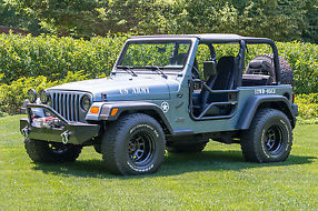This is a completely redone 1997 Jeep Wrangler. Modifications and refurbishing include the following:- Satin Blue paint and matching interior dashboard and console. - Aftermarket mirrors and tailgate-Aftermarket front bumper with