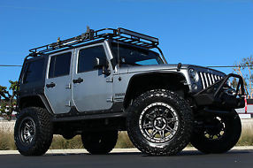 2008 LIFTED JEEP WRANGLER JK UNLIMITED 4 DOOR 4X4 SILVER 3 PIECE HARDTOPLT325/70R17 FALKIN TIRES, RUGGED RIDGE WHEELS, MATCHING SPARE4" LIFT KIT, INTUNE POWER TUNERSMITTYBUILT STEEL FENDERS & SIDE BARSBESTOP BIKINI TOPTINTED