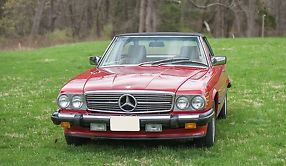 1989 Mercedes Benz 560SLThis cars exterior color is signal red with cream interior. It is a one owner car with all detailed documentation since 1989. The black soft top, leather seats,
