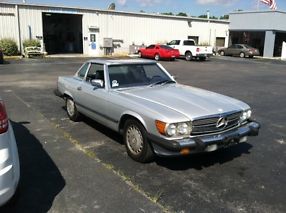 1989 White Mercedes Benz 560SL with two tops. Some age cracks on the original convertible roof. Low mileage, rust free, dent free, classic convertible. Last year for the 107 body style. In excellent condition. Everything w