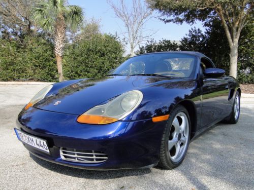 2002 Porsche Boxster always garaged with all the original factory documents & window build sheet. Lapis Blue exterior paint color with leather soft leather tan interior in perfect condition. The rebuilt motor was warranty reb