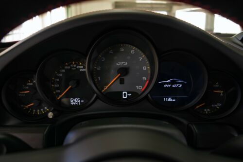 2018 Porsche 911 GT3 Touring with 6500 miles. Guards red over black leather interior with red deviated stitching. Options include CF bucket seats, front axle lift, aluminum pedals, red seatbelts, and sport chrono. Car is covered i