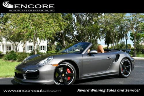 This 2015 Porsche 911 2dr 2dr Cabriolet Turbo with Premium Plus and Sport Chrono Packages features a 3.8L FLAT 6 CYLINDER 6cyl Gasoline engine. It is equipped with a 7 Speed Automatic transmission. The vehicle is Agate Gray Met