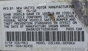 2003 Toyota Corolla Conquest manual 5 door hatch. ZZE122R