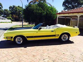 1973 Ford Mustang convertible , Front wheel disc brakes , The engine is a 302 with a c6 auto tranny, it has a gt bonnet , original 75000 miles with no rust , it still has the original floors. it has a power top which is in good co