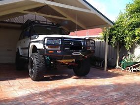 Toyota landcruiser 1995 gxl features :petrol and gas315/75/16 dick cepek fc11 x55" dobinson flexy coils5"tough dog 9 stage adjustable shockstough dog panhards adjustabletough dog brake lines tough dog castor plates16x10 neg 44 su
