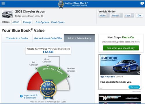 Just got a new Audi Q7 and am selling my Aspen Great car! Been the family's 3rd car, only 67,000 easy miles! One year left on the extended warranty. Been serviced on schedule and kept pristine for 10 years! Car is in GREAT shape.