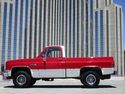1985 GMC 1/2 ton K-10 pickup truck. 5.0 L V-8 4 speed automatic auxiliary fuel tank comfortilt steering rally wheels glide-out spare wheel halogen hi-beam headlights cargo area lamp original AM/FM stereo with cassette chromed re