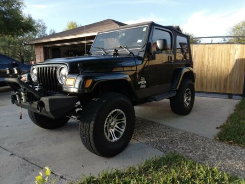 2003 Jeep Wrangler / TJ SAHARA. AUTOMATIC TRANSMISSION 6 CYL 4.04 " LIFT KIT W/ 33 X 12.50 YOKAHOMA A/T NEW SMITTYBILT SOFT TOP WINCH BUMPER W/ R/C WINCH = ( WINCH DOES NOT ENGAGE )LED HEADLIGHTS LED FOGLAMPSBLACK W/ GRAY INTERIOR