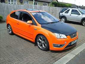 FORD FOCUS ST-3 IN PEARL ORANGE BEAUTIFULL COLOUR, BONNET HAS BEEN WRAPPED IN CARBON FIBER LOOKS AND DRIVES LIKE NEW VERY MAINTAINED SOME HISTORY WITH VEHICLE, CLEAN INTERIOR BLACK LEATHER INTERIOR, WIND DEFLECTORS ON DOORS UPGRAD