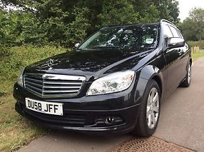 MERCEDES BENZ C180 KOMPRESSOR ESTATE 2008 58 plate, automatic, with Obsidian black bodywork with imaculate black cloth interior. Only 88,000 miles with a FULL Mercedes Benz service history and a years M.O.TAlso come with CD play