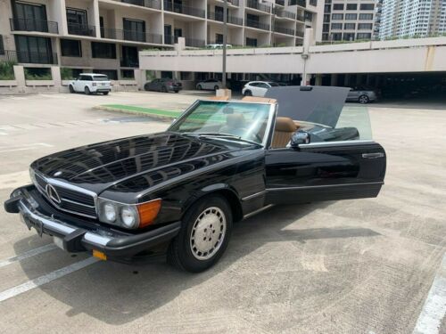 The car has an interesting mileage of 76,000 original Miles). Documented with three owners since New this 560SL, Finished in a very desirable and popular color combination of Black with Palomino leather interior, Paint is soft to