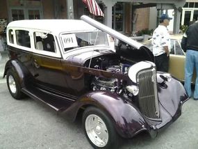 1937 Plymouth two door sedan. Tu-tone Green Met. base coat clear coat top half. Lower flat black. Outside door handles,deck lid hinges removed. One piece hood opens from rear. Smooth running boards. Shaved door handles and deck li