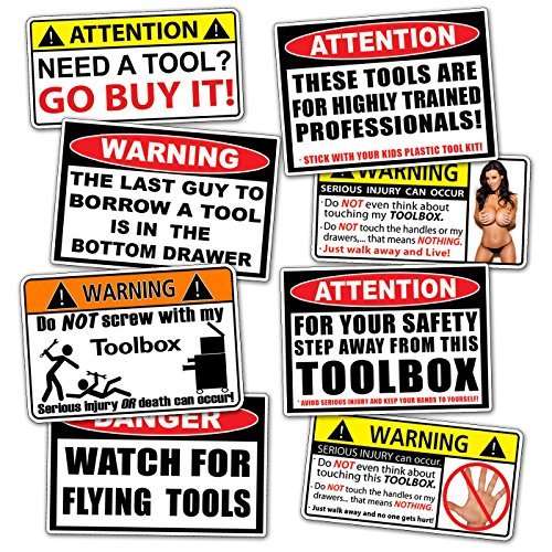Funny Toolbox Warning Decal Sticker Tool Box Pack Set
