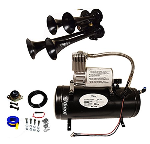 Viking Horns V3305/4008B Loud 149 Decibels 150PSI 4 Trumpet Black Train Air Horn Kit